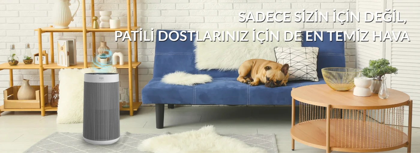 Hava temizleyicilerimizin ön filtresi evcil hayvan tüylerini ve kepeklerini yakalar.
